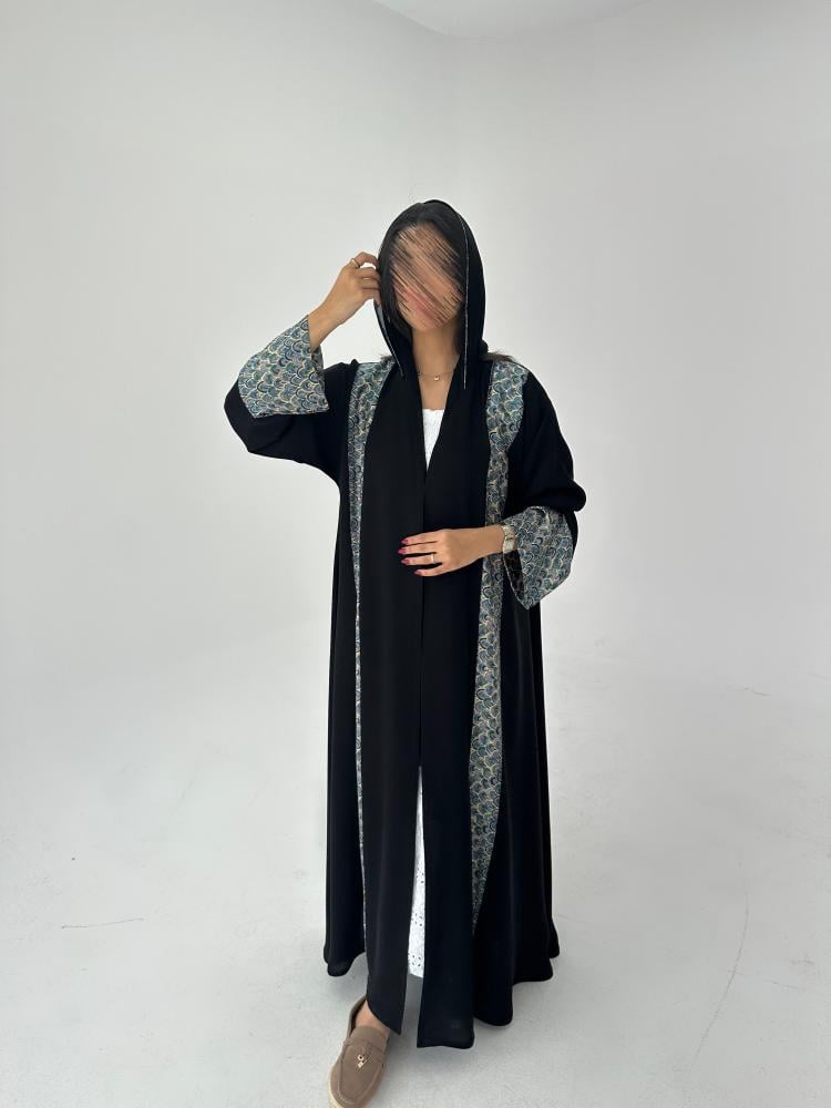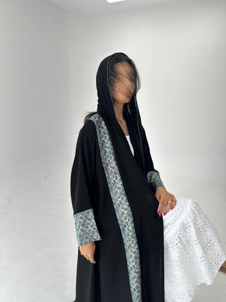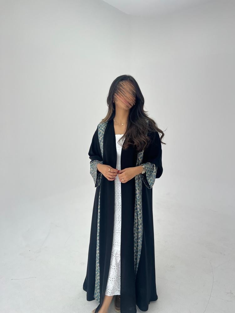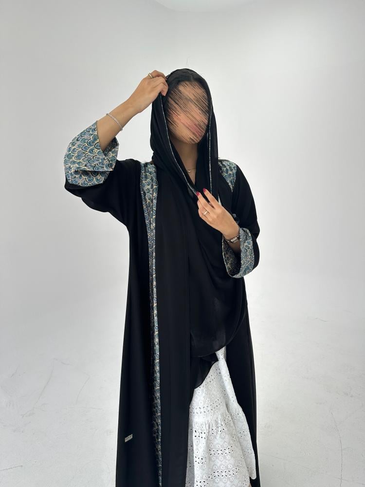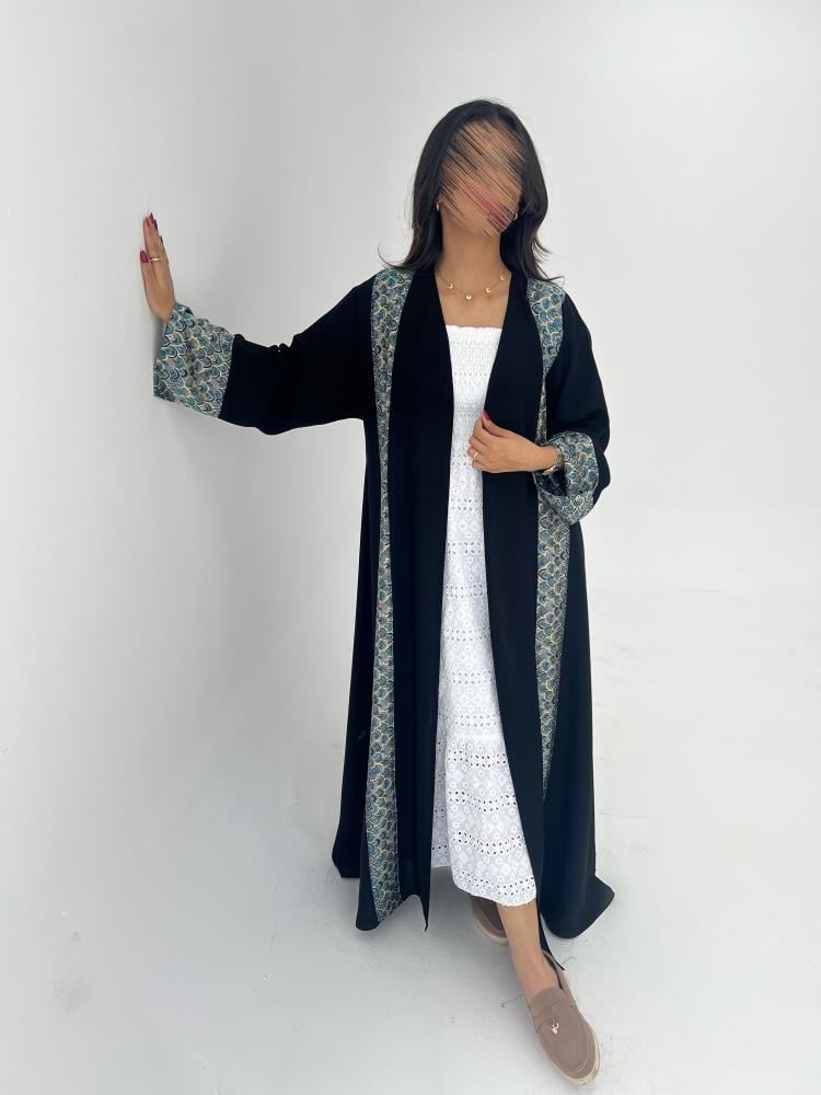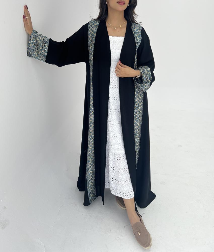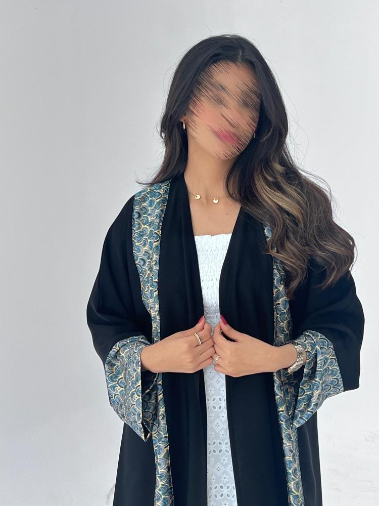 عباية بلون الاسود بقماش الانترنت مع حرير ملون بتصميم مميز في الكم والعباية
