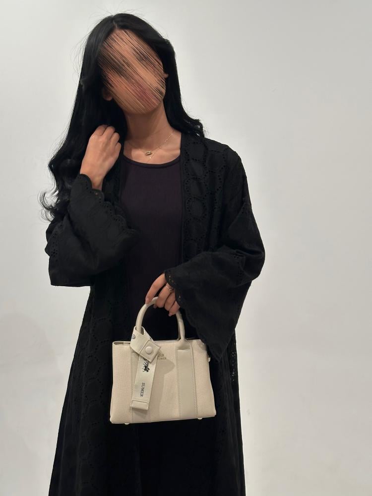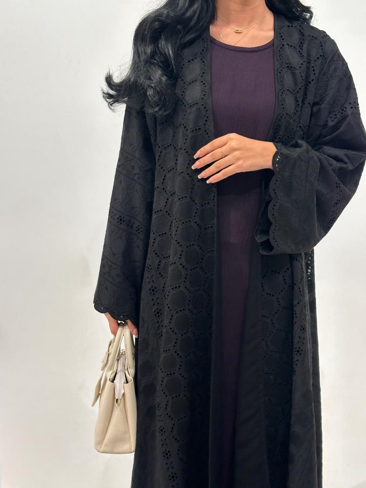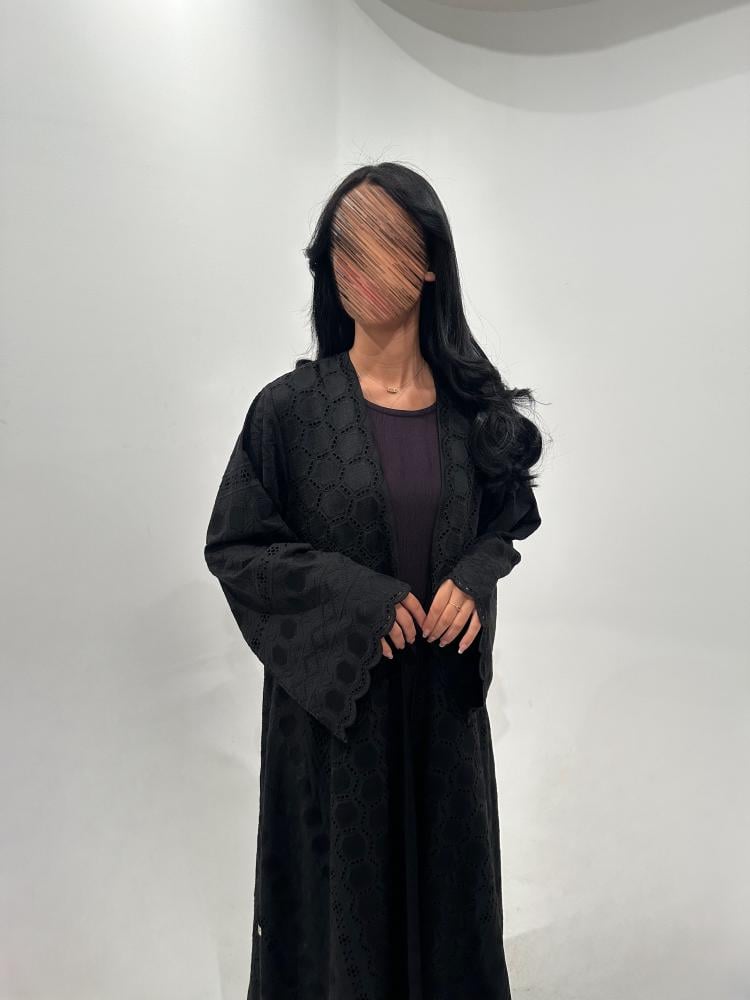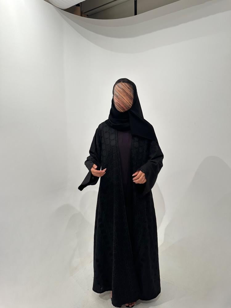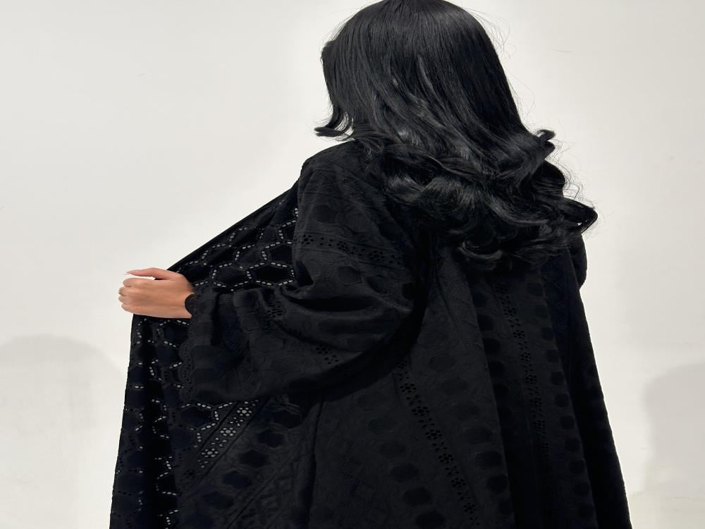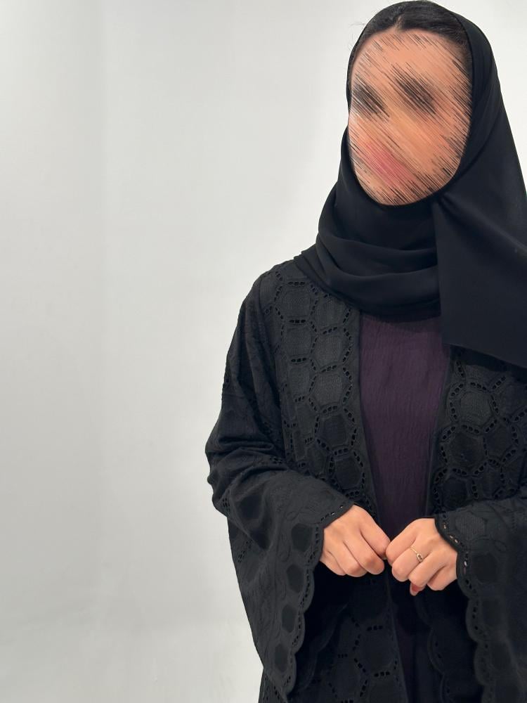 عباية روكامة اسود مبطنة القصة نص كلوش مع طرحة سوداء